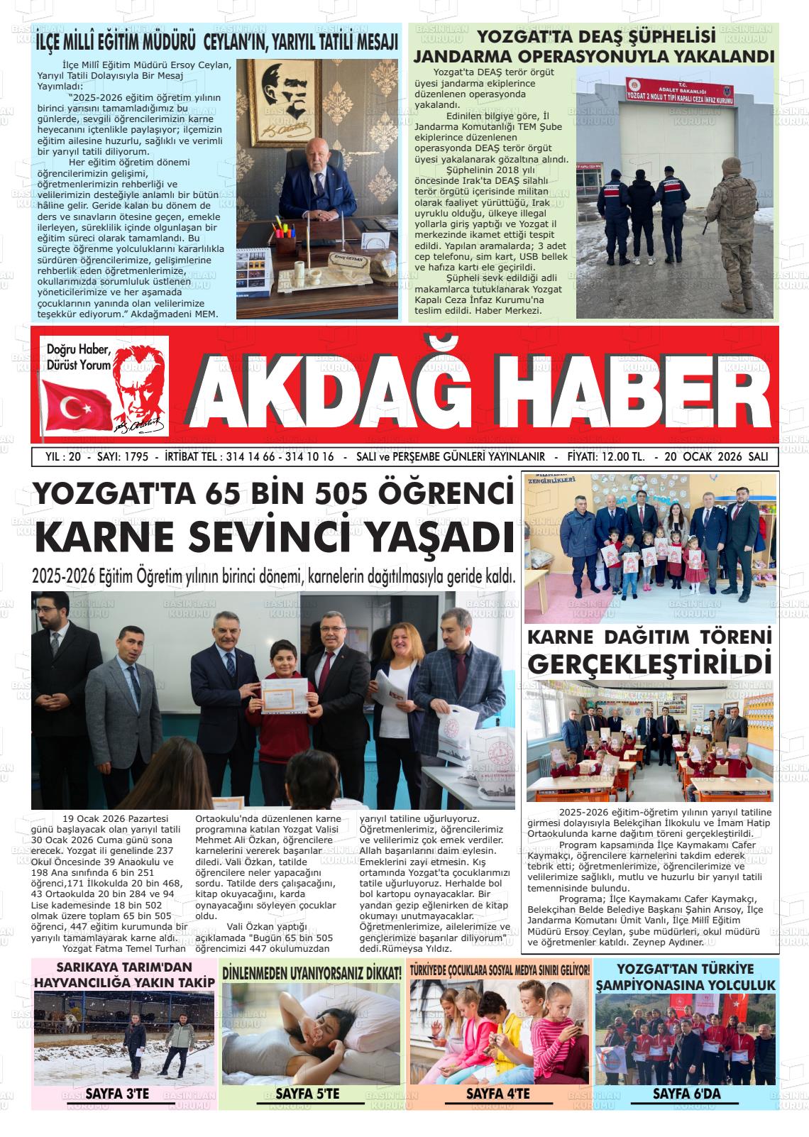 AKDAĞ HABER GAZETESİ 20 OCAK 2025 SALI